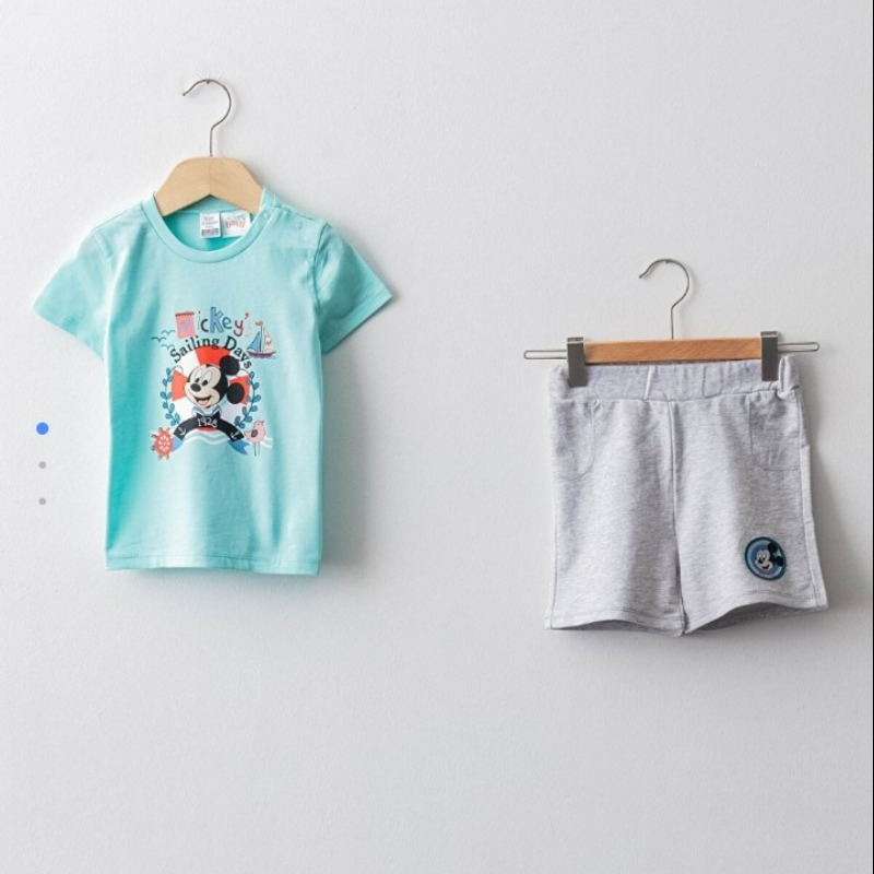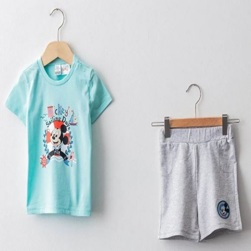 LC WAIKIKI baby Bicycle Collar Short Sleeve Mickey Mouse Printed Baby Boy T-Shirt and Shorts 2 Pcs Set