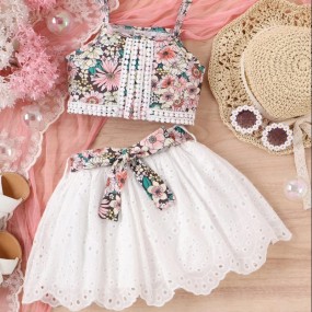 SHEIN Young Girl Floral Print Cami Top & Belted Schiffy...