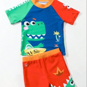 Young Boy Cartoon Dinosaur Print Beach Swimsuit