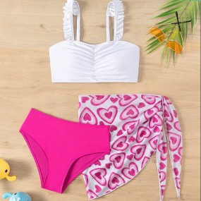 SHEIN Young Girl Heart Flower Patterned Bikini Set 3-Pi...