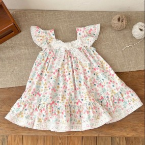 Young Girl Floral Decor Cap Sleeve Dress For Spring Sum...