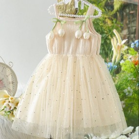 2025 New Charming Girls Net Tulle Embroidery Sequin Puf...