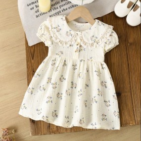 1pc Girls Floral Print Ruffle Collar Short Sleeve Loose...
