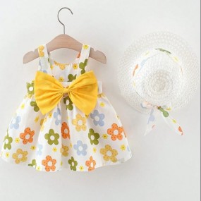 New Summer Printed Sleeveless Dress With Solid Color Bi...