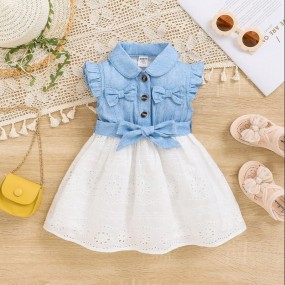 SHEIN Baby Girl's Casual Washed Skyblue Sleeveless Dres...