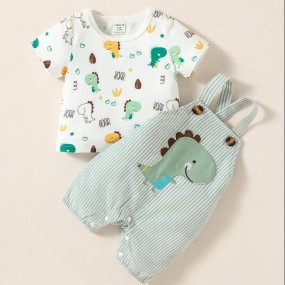 SHEIN Baby Boy Cartoon Dinosaur Print Tee & Striped Ove...