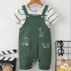 Baby Boy Cute Animal Embroidered Short Sleeve Top And O...