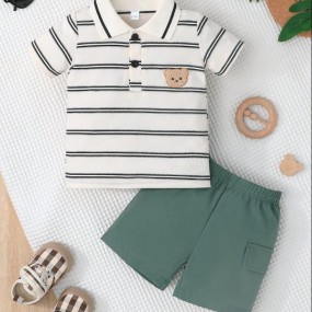 2pcs Set Summer Baby Boy Cute Bear & Stripe Pattern Shi...
