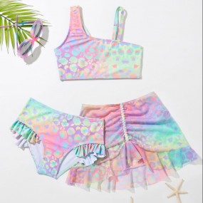 Young Girl 3packs Leopard Print Bikini Set & Beach Skir...