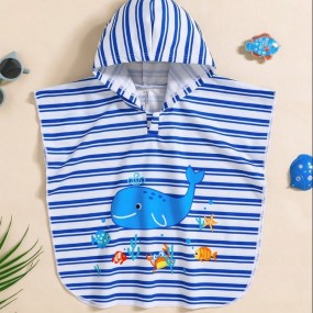 SHEIN Baby Boy Cartoon Whale Print Hooded Sleeveless Te...