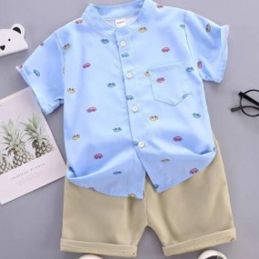 Toddler Boys Car Print Patched Pocket Shirt & Shorts