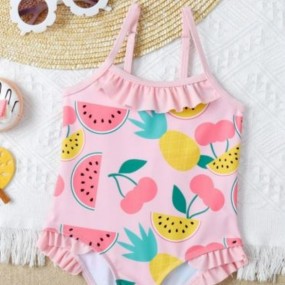 Baby Girl Fruit Print Ruffle Trim One Piece Swimsuit