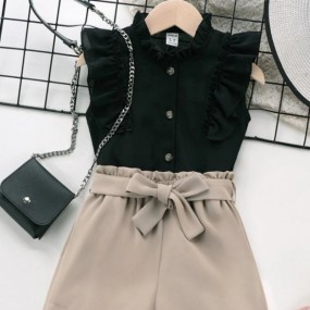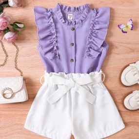 Toddler Girls Ruffle Trim Top & Paper Bag Waist Belted ...
