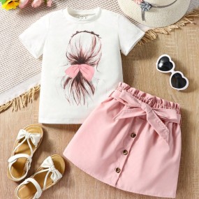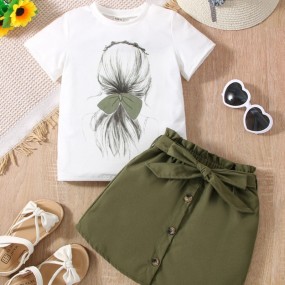 Toddler Girls Figure Graphic Tee & Paperbag Waist Belte...