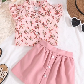 Toddler Girls Ditsy Floral Print Ruffle Trim Blouse & S...