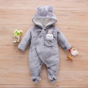 Newborn Winter Fleece Jumpsuit Outfit Hooded Romper Bab...