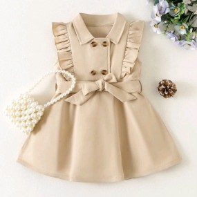 فستان بحزام وأطراف مكشكشة وأز...