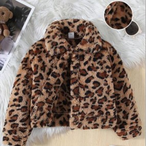SHEIN Young Girl Leopard Pattern Flannel Jacket