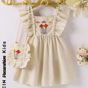 SHEIN Young Girl Toddler Girls' Embroidered Floral Patt...