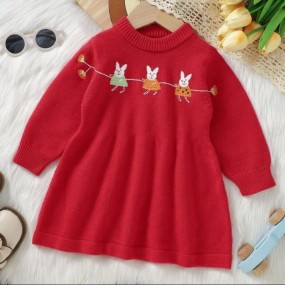 Baby Girl Rabbit Pattern Sweater Dress