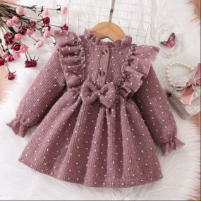 Baby Polka Dot Ruffle Trim Flounce Sleeve Bow Front Dre...