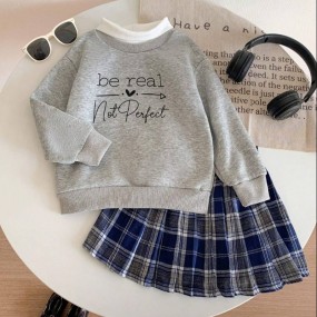 SHEIN Genkimix Kids Young Girl Two-Piece Slogan Printed...