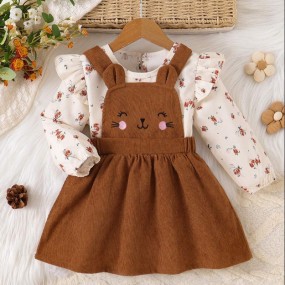 2pcs Baby Girls' Crew Neck Long Sleeve Brown Graphic Pr...