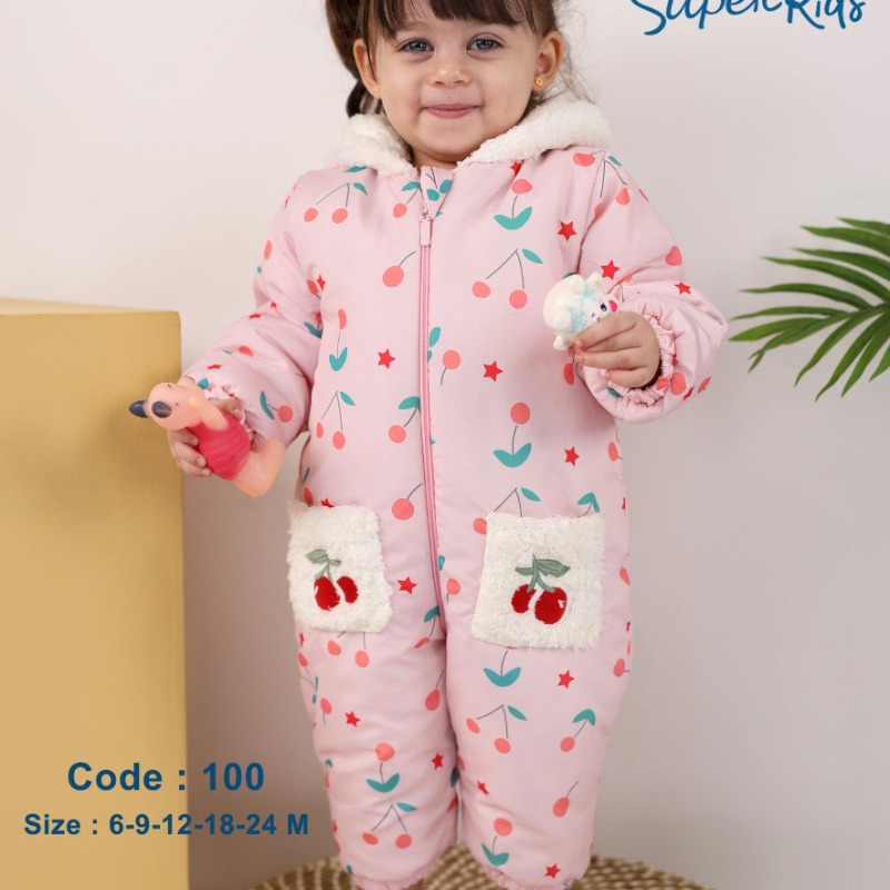 Cherry printed microfiber jumpsuit lined with fur