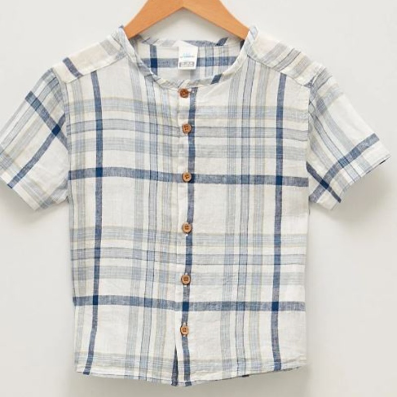 LCW baby Bicycle Collar Short Sleeve Plaid Patterned Baby Boy Shirt