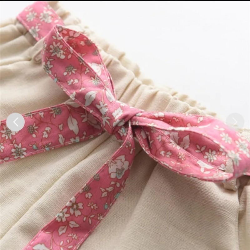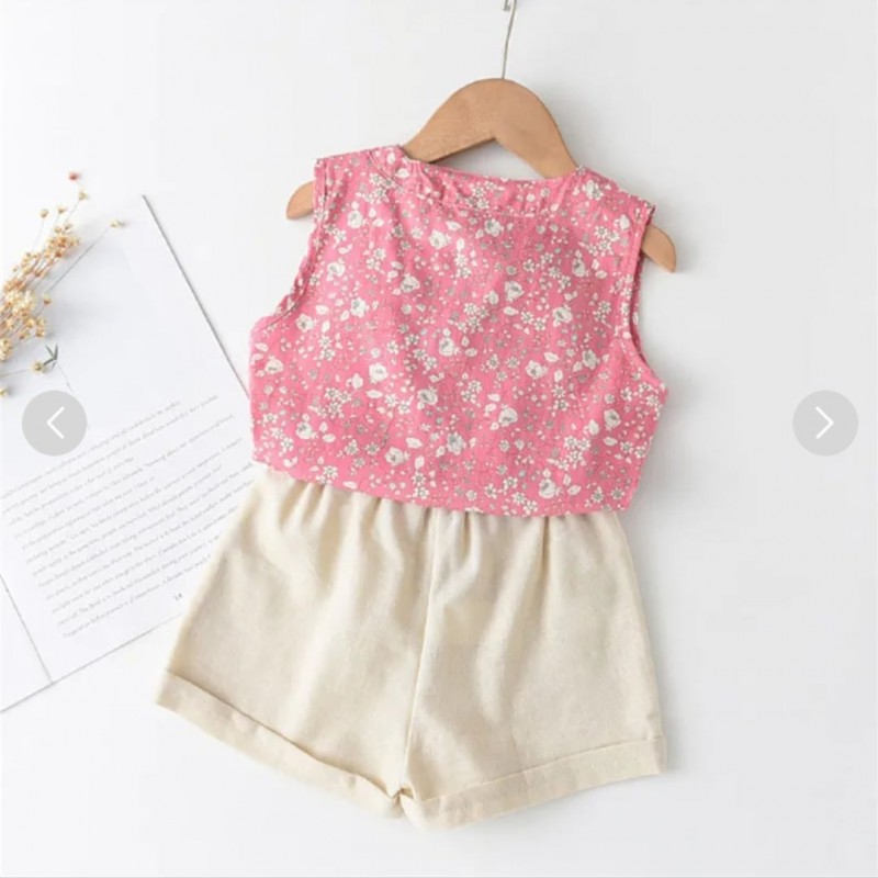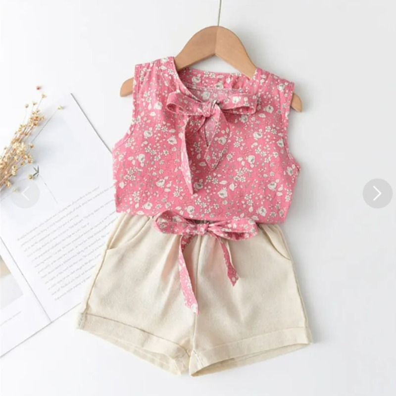 toddler floral printed bowknot decor sleeveless T-shirt & solid color shorts