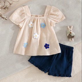 Cozy Pixies Baby Girl 3D Floral Collar Bubble Short Sle...