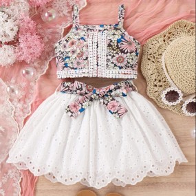 SHEIN Young Girl Floral Print Cami Top & Belted Schiffy...