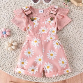 2pcs Baby Girls' Cute Short Sleeve Ruffle Bodysuit And ...