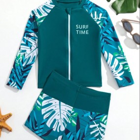 Young Boy Tropical Print Zipper Front Beach Swimsuit