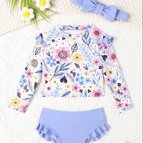 Baby Girl Floral Print Ruffle Trim Beach Swimsuit With ...