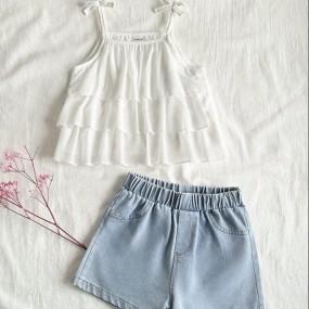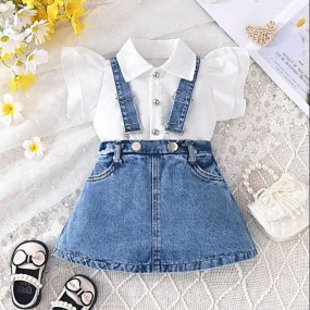 Souflis Souflis 2pcs Baby Girl's Denim Overalls Dress A...