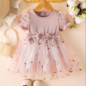 Summer New Baby Girls Mesh Embroidery Flower Trim Short...