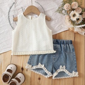 2pcs Baby Girls Knitted Floral Camisole Top And Ruffle ...