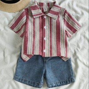 2pcs Set Summer Baby Boy Cute Bear & Stripe Pattern Shi...