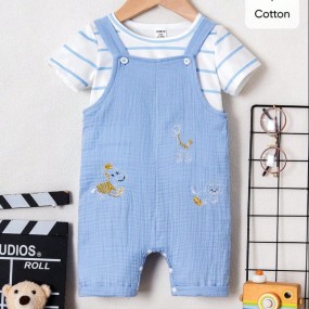 Baby Boy Cute Animal Embroidered Short Sleeve Top And O...