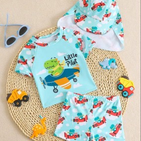 3pcs Set Baby Boys' Summer Swimsuit With Dinosaur Print...