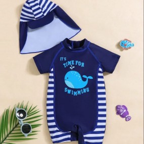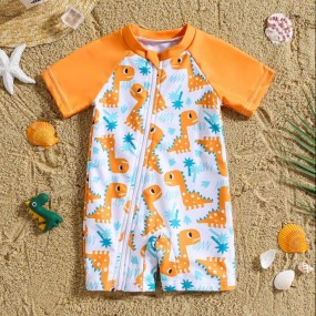Newborn Zipper One-Piece Swimsuit, Adorable Dinosaur Pr...