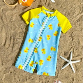 Cute Duckling Newborn Swimming Suit, Blue & Yellow Colo...
