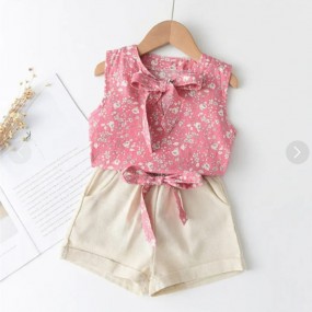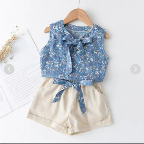 toddler floral printed bowknot decor sleeveless T-shirt...