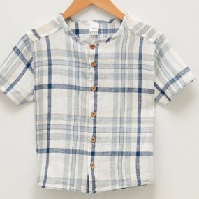 LCW baby Bicycle Collar Short Sleeve Plaid Patterned Ba...