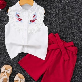 Toddler Girls Ruffle Trim Top & Paper Bag Waist Belted ...