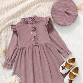 Toddler Girls Frill Trim Flounce Sleeve Corduroy Dress ...