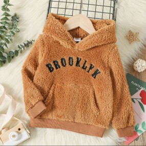 SHEIN Baby Letter Embroidery Kangaroo Pocket Flannel Ho...