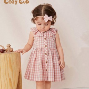 Cozy Cub Baby Girl Gingham Print Ruffle Trim Button Fro...