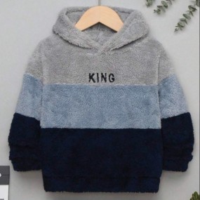 SHEIN Toddler Boys Letter Embroidery Two Tone Teddy Hoo...